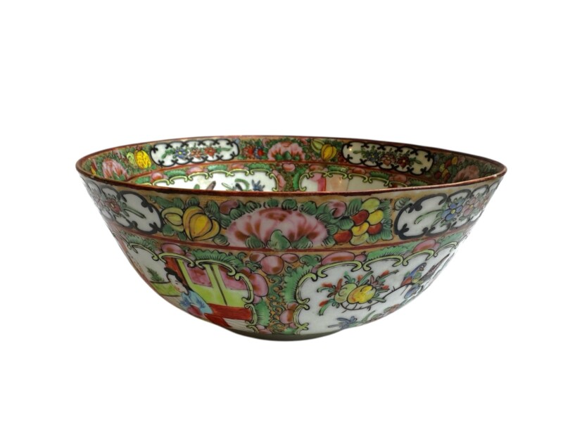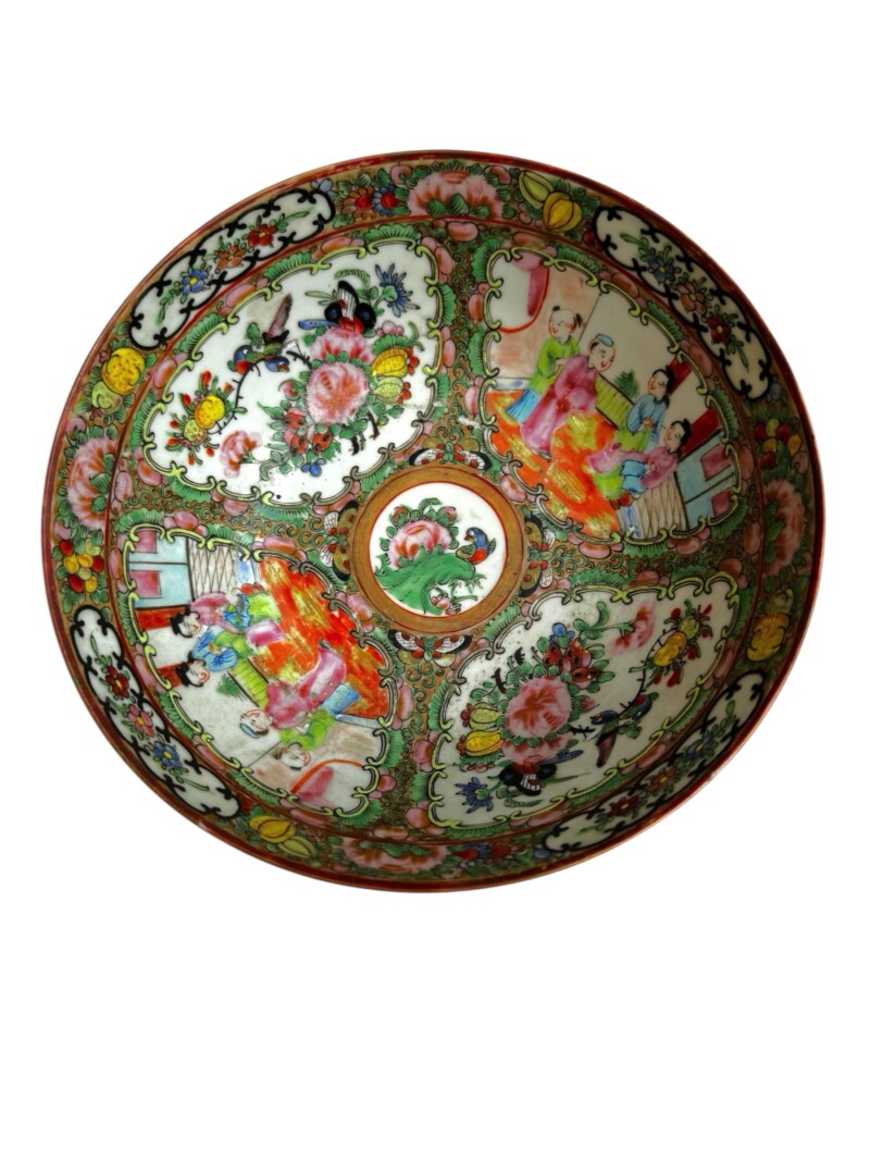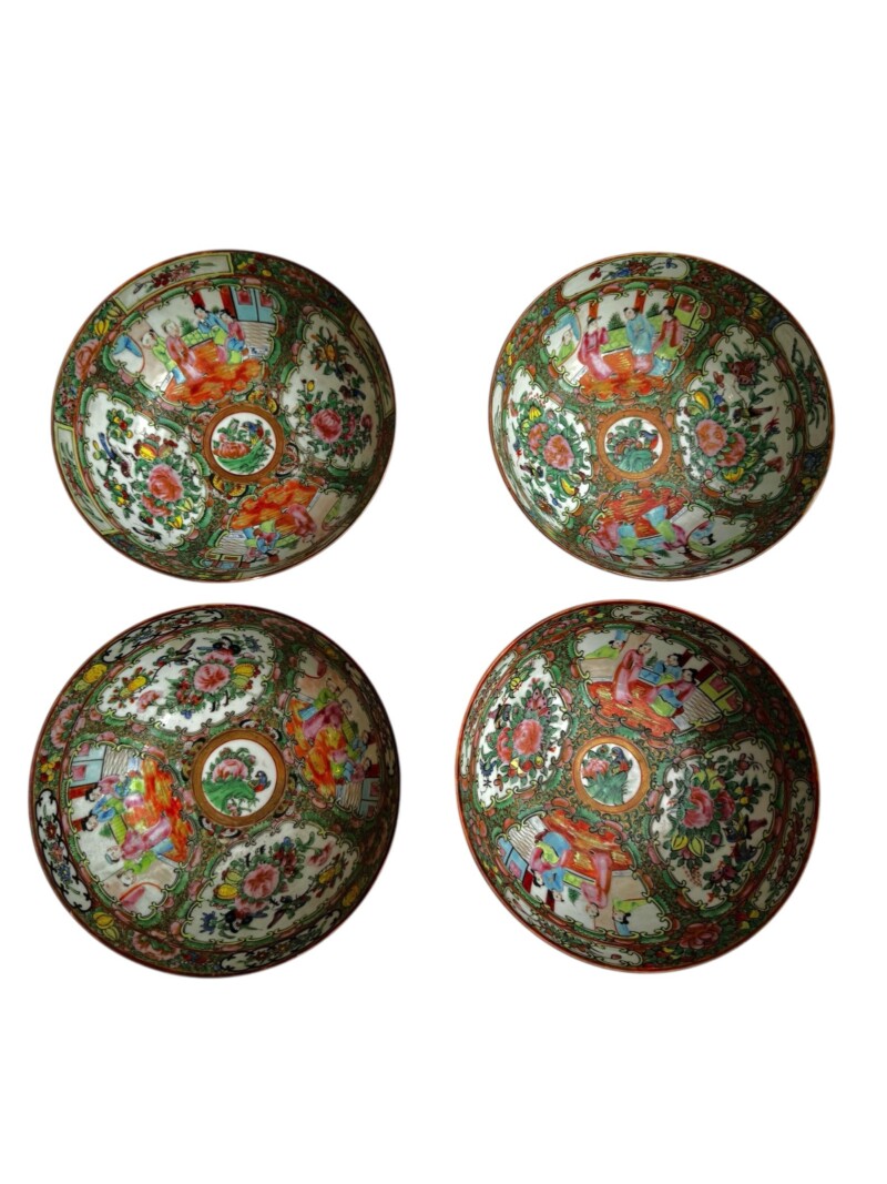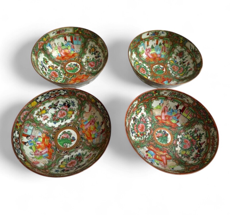 Exceptional 19th century Chinese Famille Rose 8 inch soup bowls.  Bright and deep colours – all hand painted scenes on the interior and exterior. Very nice quality.