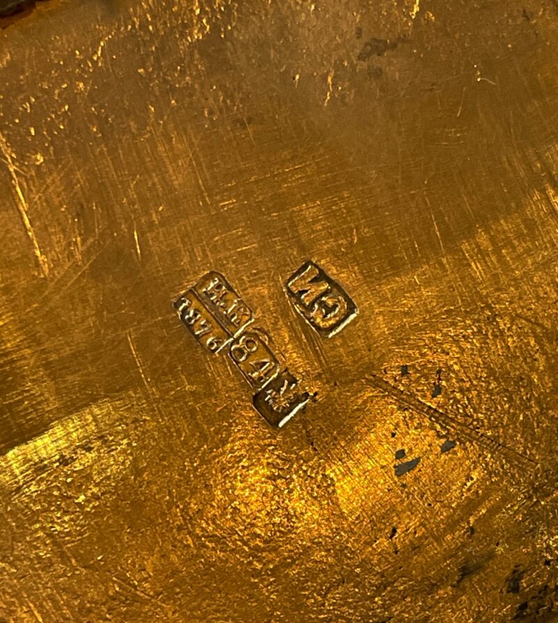Russian hallmarks for Moscow 1876 with the makers mark for  Ivan Yefimovich Konstantinov.