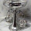 Large Austrian silver plate epergne or centrepiece hallmarked “Lentz Austria”.  Tall pedestal, with a large center bowl and two branches supporting small baskets, all in a “rose motif” pattern and in excellent condition.  A luxurious addition to any dining table for displaying fruits, side dishes or any finger foods.