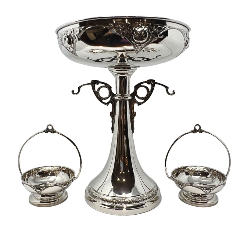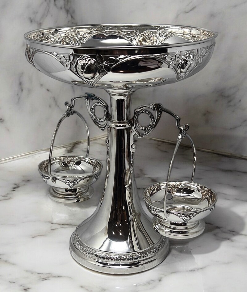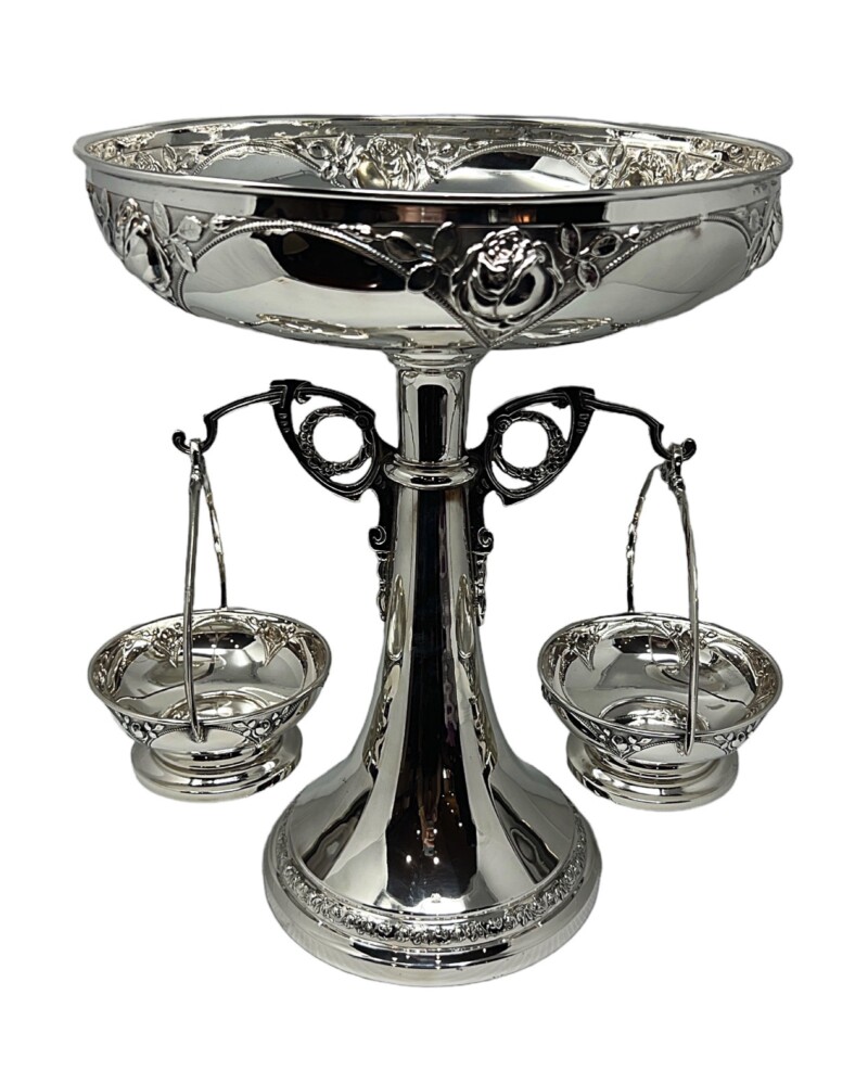 Austrian Silver Plated Epergne or Center Piece by Lentz with a Rose Pattern