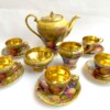 The set includes a coffee pot, creamer, sugar bowl, and five demitasse cups and saucers.