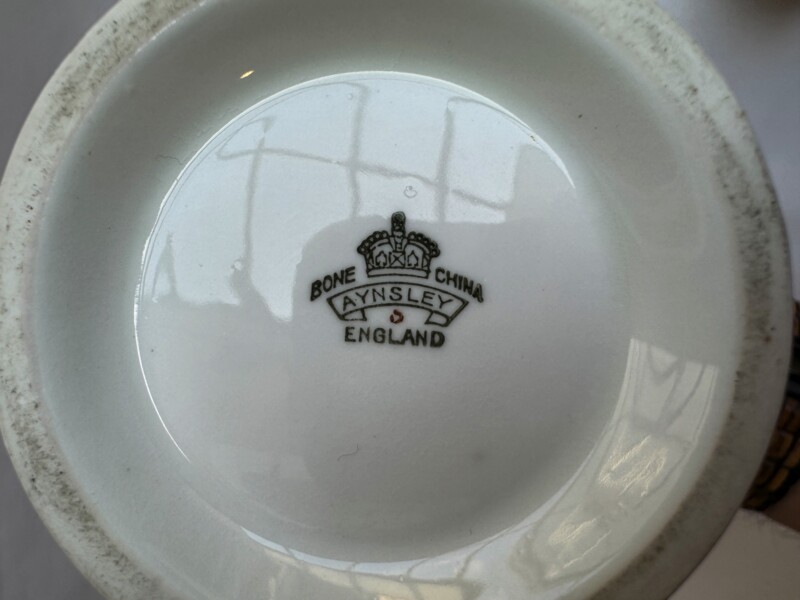 Marked Aynsley, Fine Bone China, England on the bottom of Each.  Signed N. Brunt on each hand painted piece.