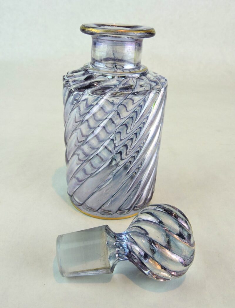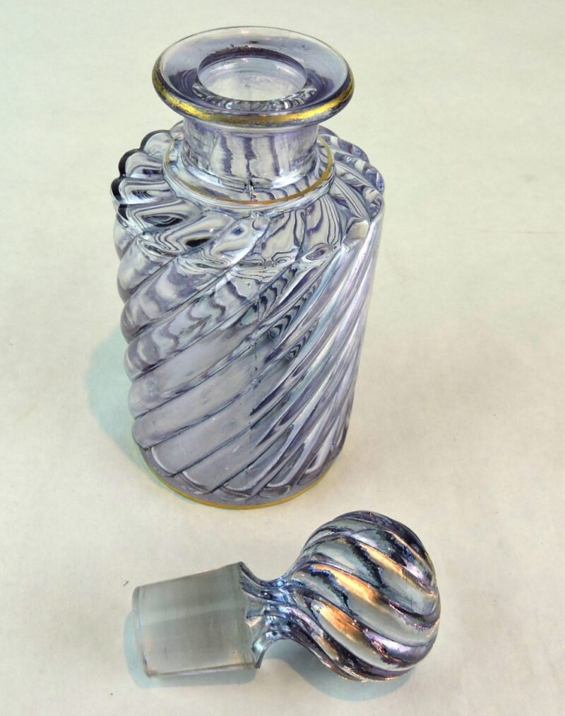 Baccarat France Crystal Perfume Bottle in Pale Blue / Lavender and Gold, Swirl Pattern, c. 1900