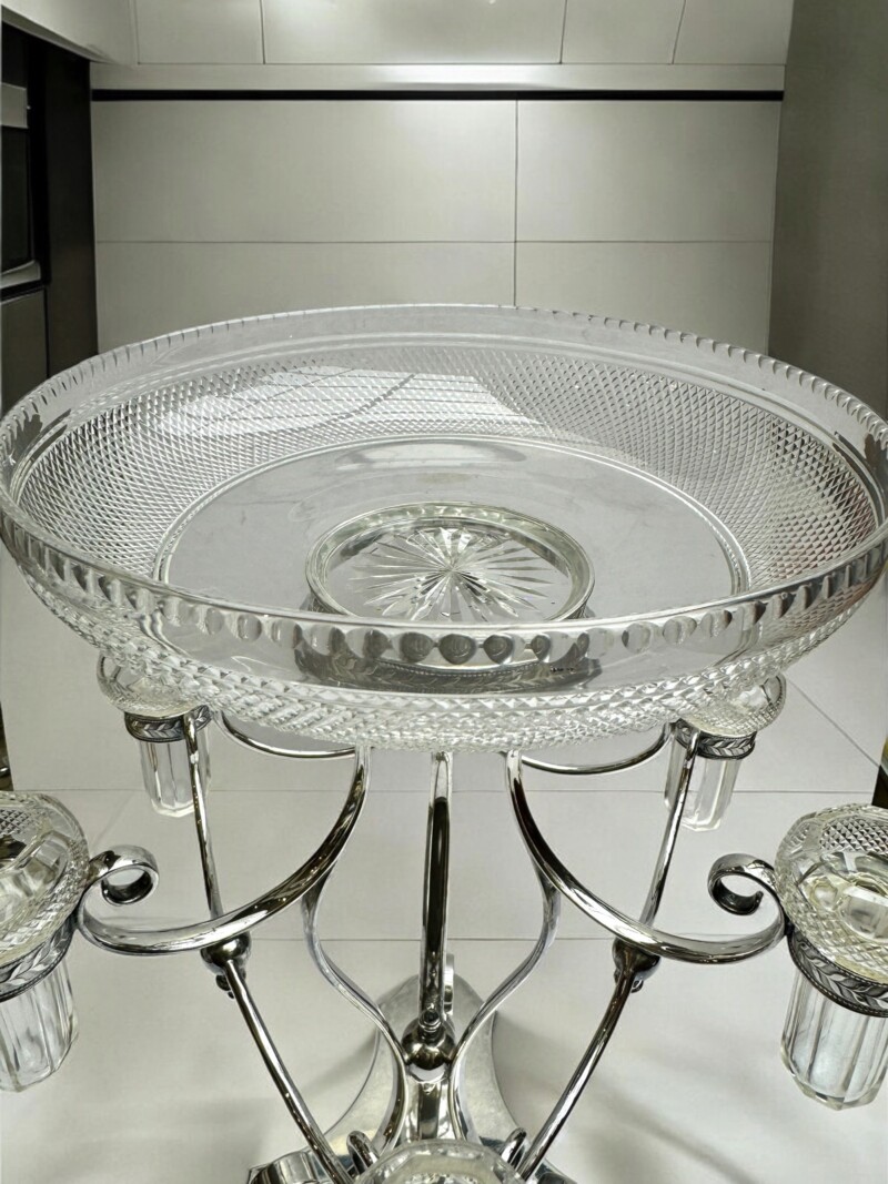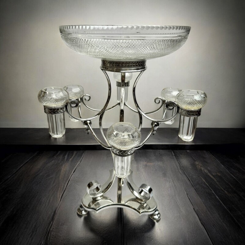 Beautiful English Silver Plated and Crystal Epergne, Johnson, Durban & Co Ltd – Birmingham Circa 1898