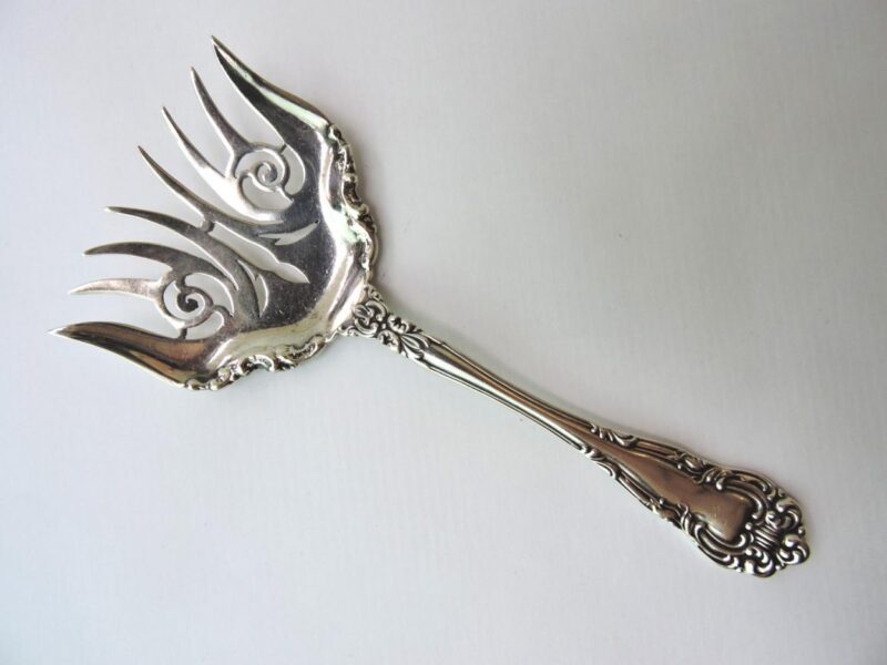 Here is a beautiful sterling silver sardine server, c. 1890.