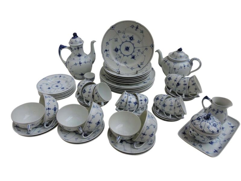 A lovely Dessert set in the Blue Lace pattern by Bing & Grondahl from Copenhagen, Denmark.  Each plate has a ‘Fish Scale’ pattern border.