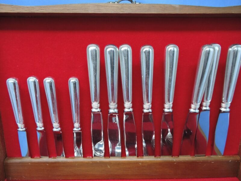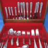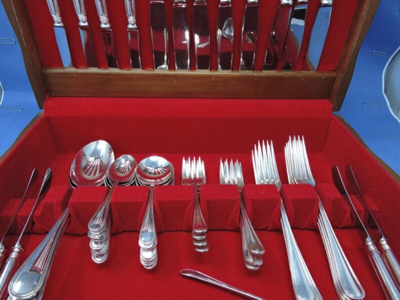 Here is a wonderful Birks regency plate flatware luncheon service for 8 plus 3 serving pieces in the “York” pattern.