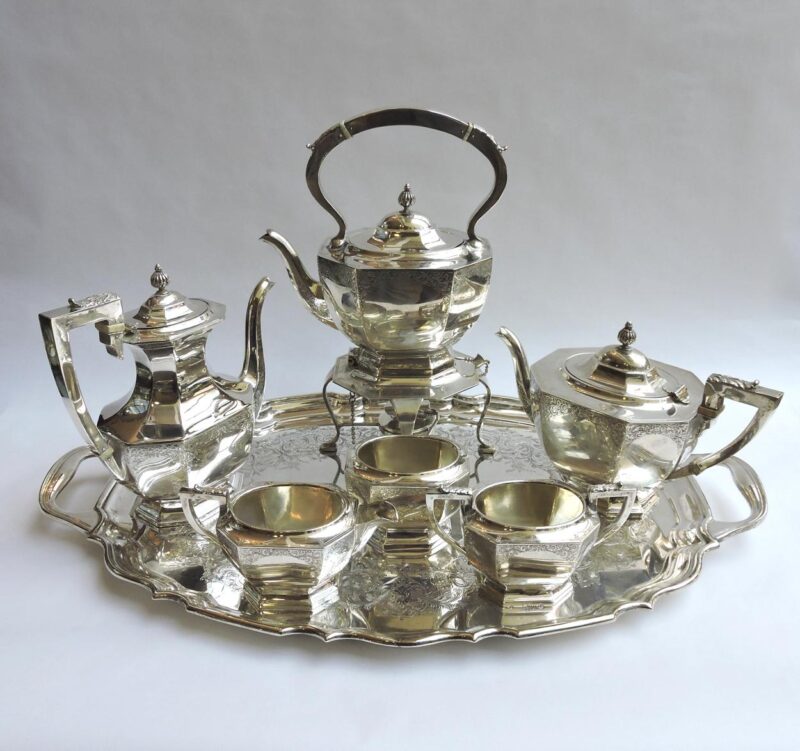 Birks Sterling Silver 7 Piece Tea Service with Sterling Tray – Dated 1928