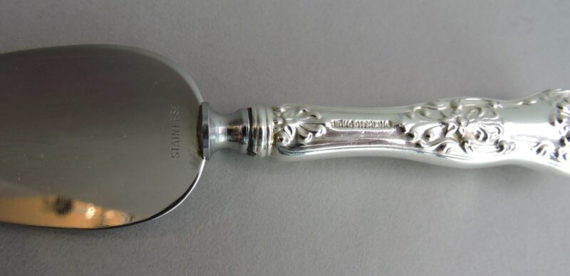 The underside of the handle is stamped “Birks Sterling” and the blade is stamped “Stainless”.