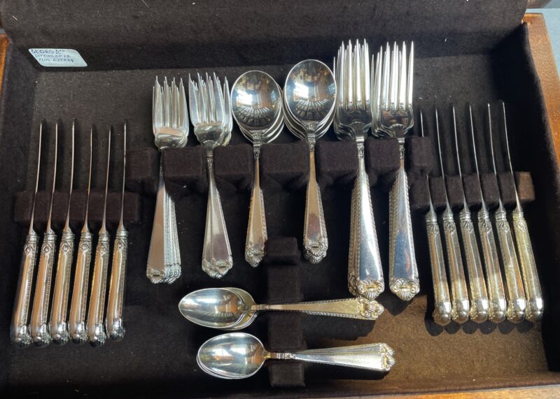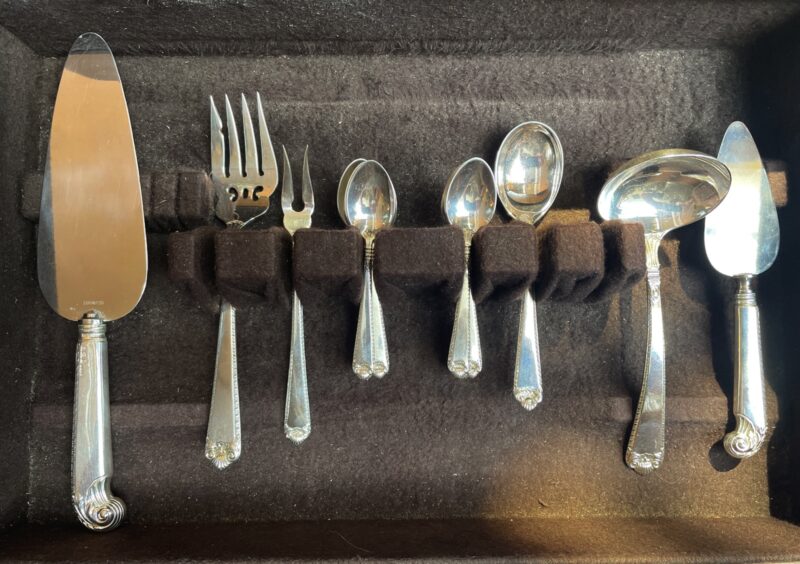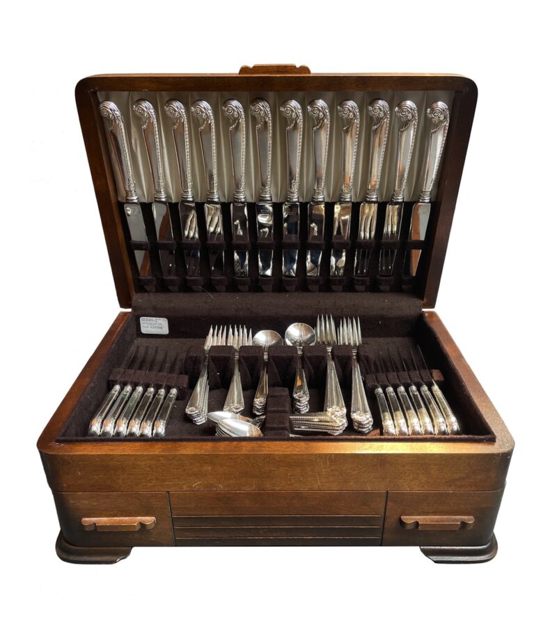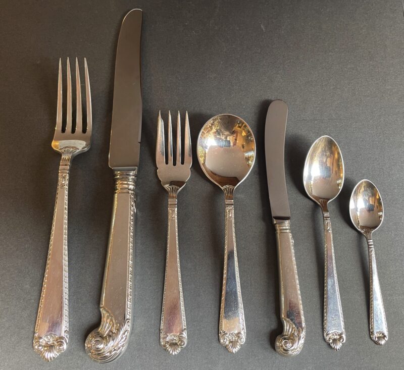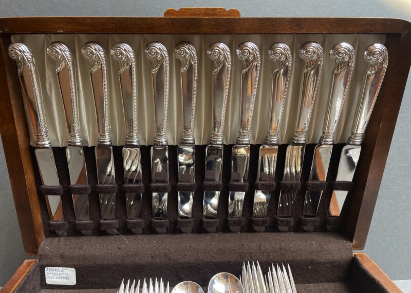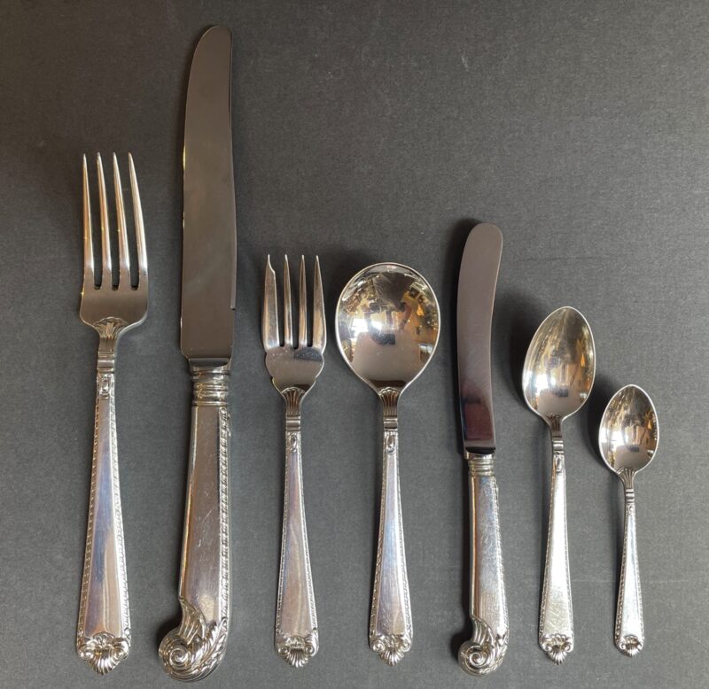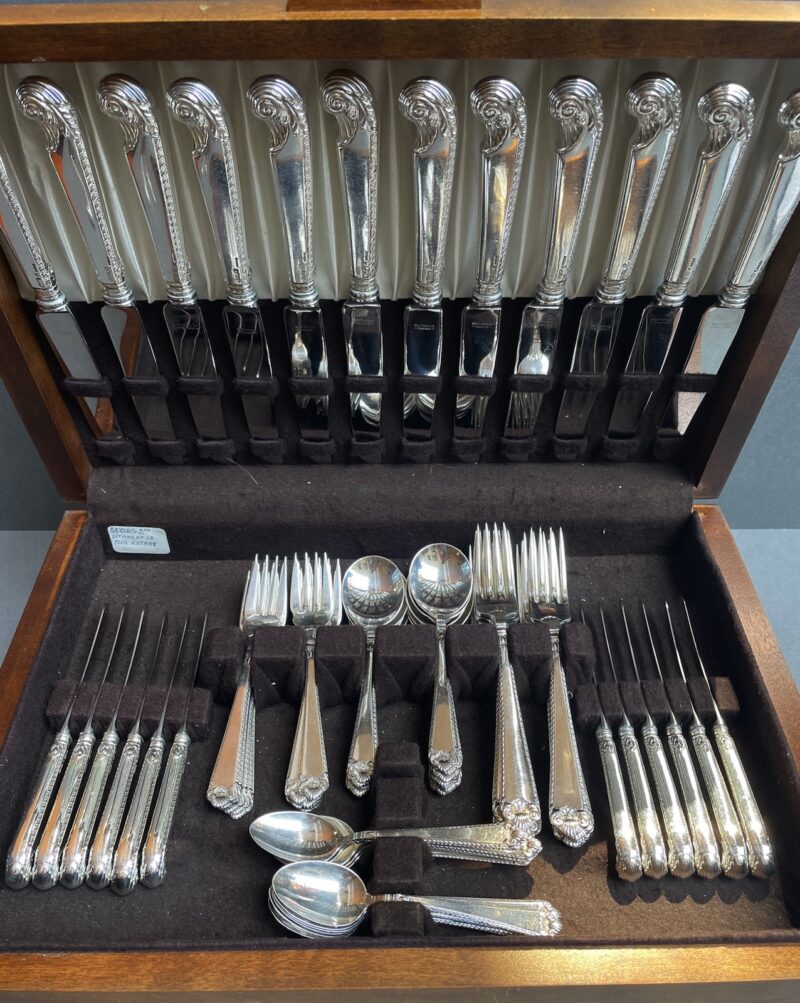 A Birks sterling silver flatware dinner set for 12 in the “George II Plain” pattern. This was one of Birks’ top patterns.