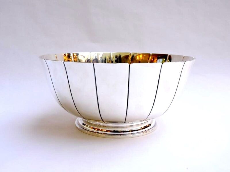 v** SOLD ARCHIVES **vThis large pedestal bowl has a elegant flair that almost looks like the petals of a flower that form a scalloped rim which enhance the depth of the bowl. This bowl is by the Canadian maker Birks and is a substantial 986 grams.