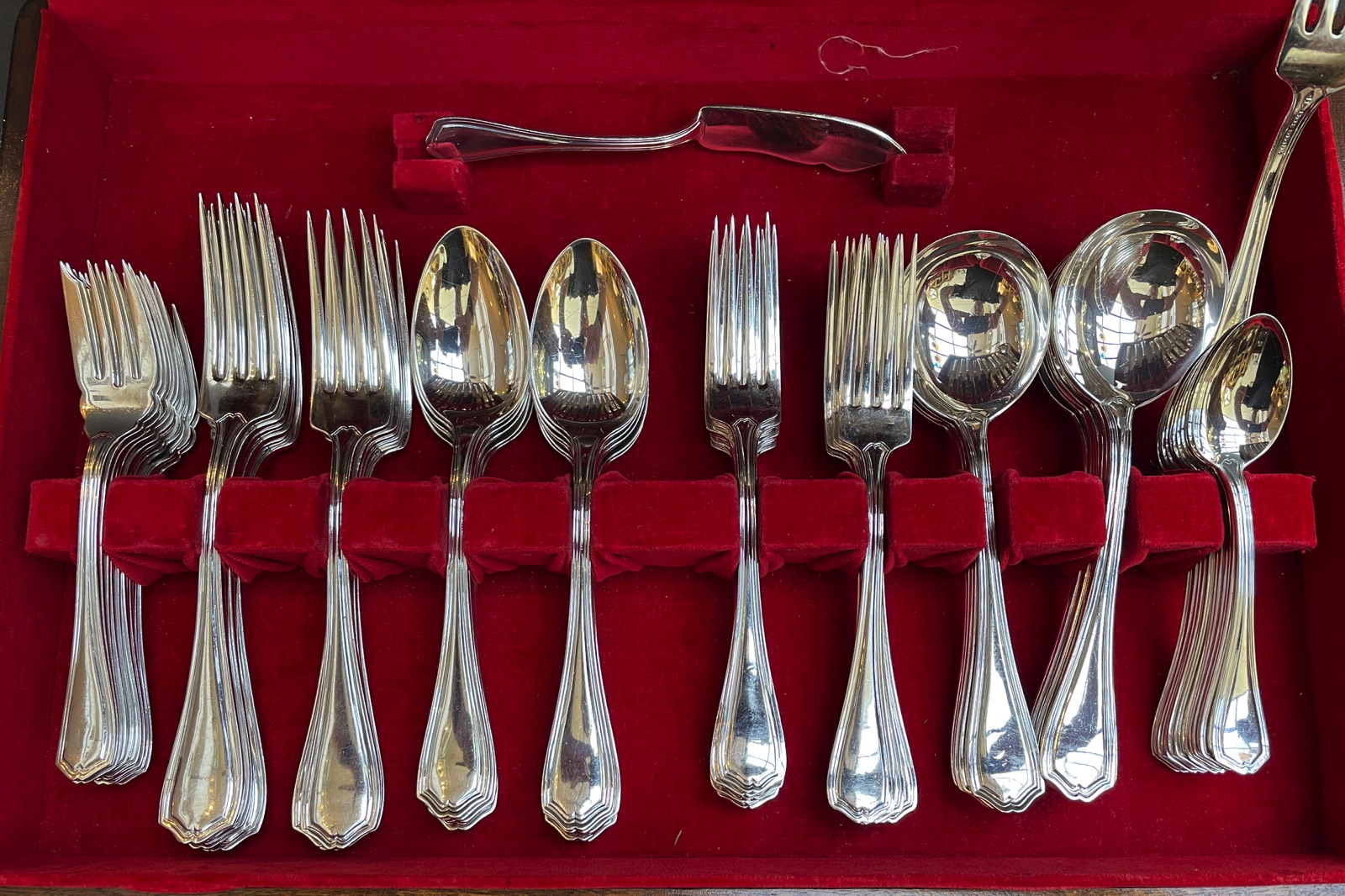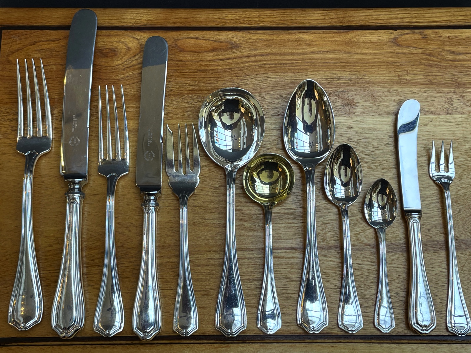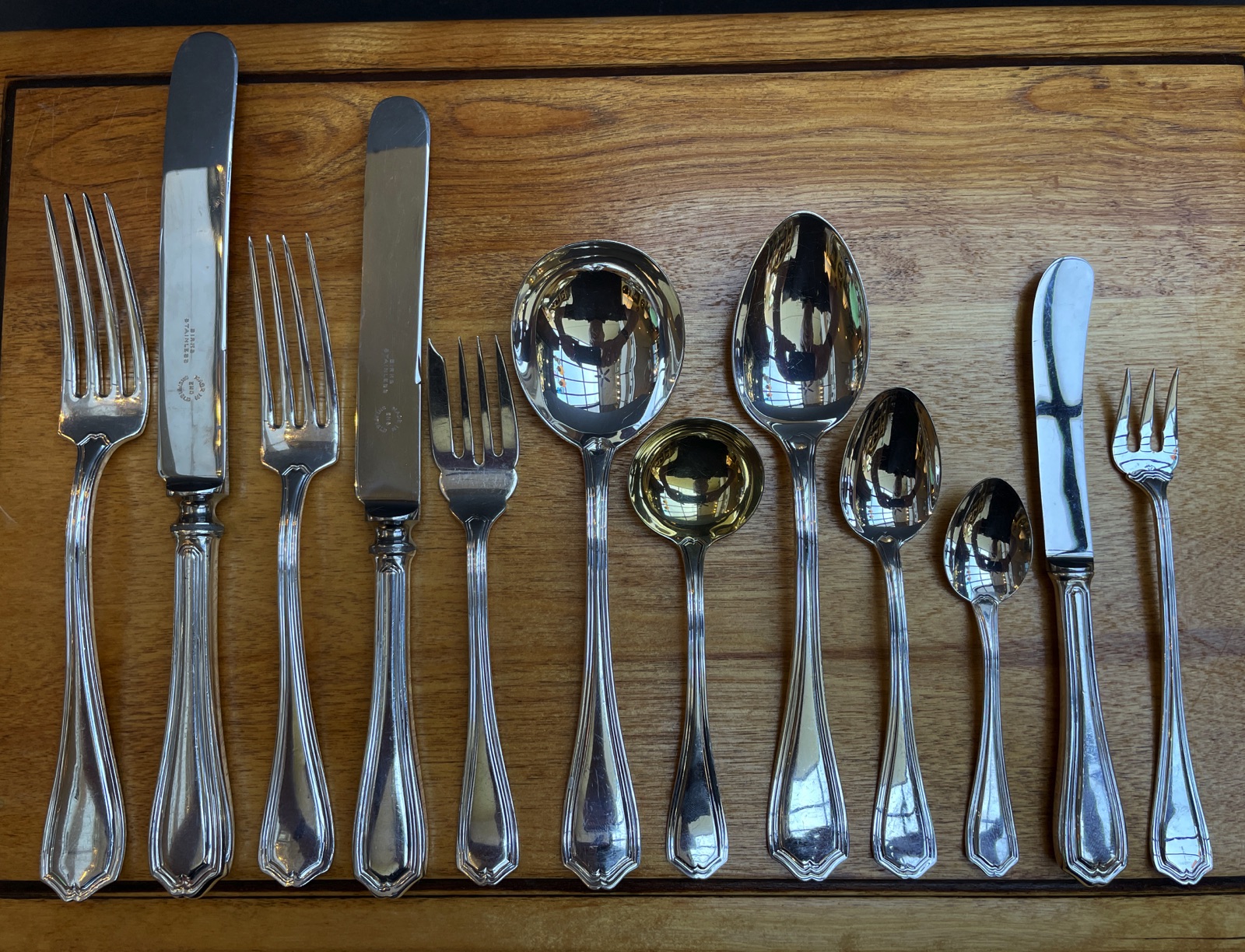 Birks Sterling Set for 12 – Georgian Plain – Dinner & Luncheon Size – 145 Pieces. circa 1920