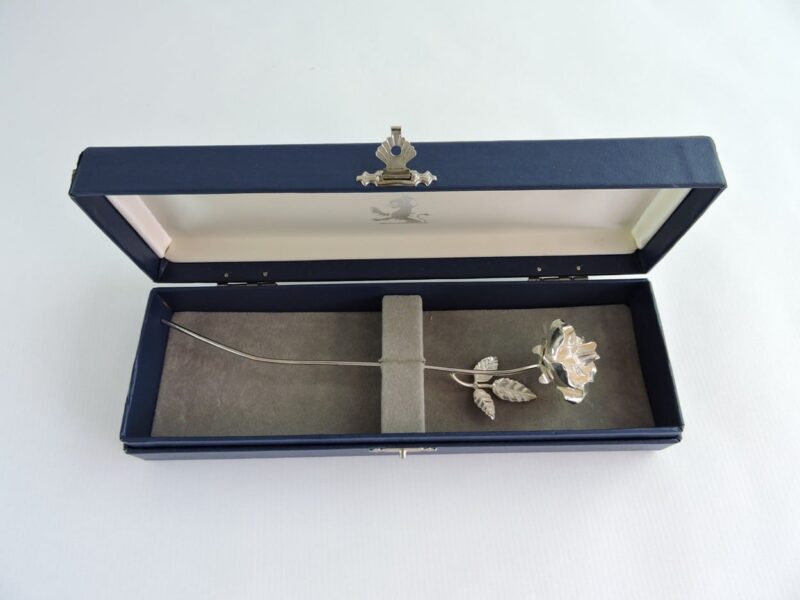 A ‘Birks Sterling – Short Stemmed Rose With Original Fitted Case’ – made in America. Beautifully hand crafted and designed, with a single blossoming rose with leaf, thorn and long stem. Exquisite quality and condition.