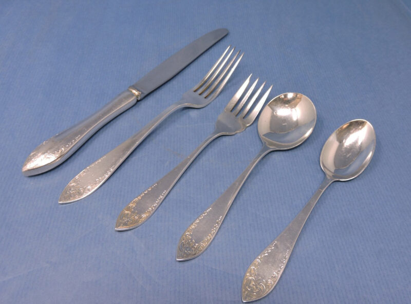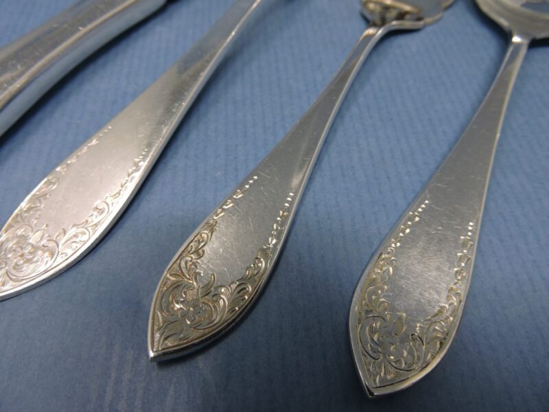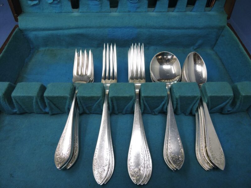 Birks Sterling Silver Luncheon Set for 8 Plus 3 Serving Pieces – “Tudor Royal” Pattern