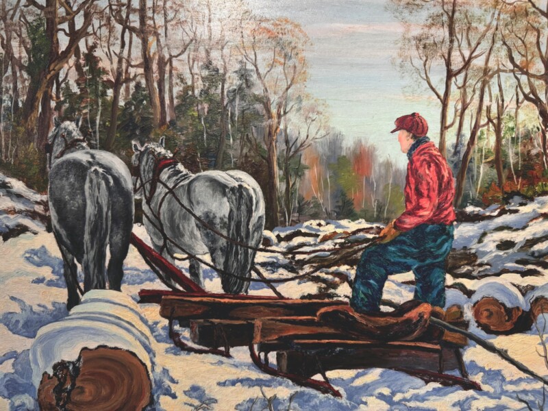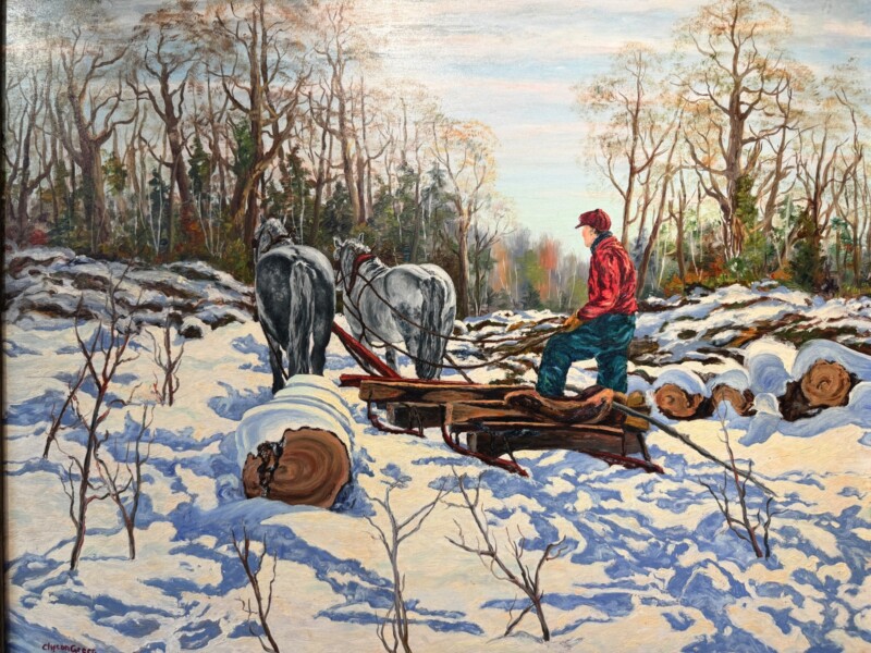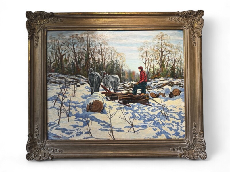 Canadian Landscape Painter Clifton Wellington Greer (1904-1986) Large 24″ x 30″ Oil Painting on Artist Board “Muskoka Bush in Winter”