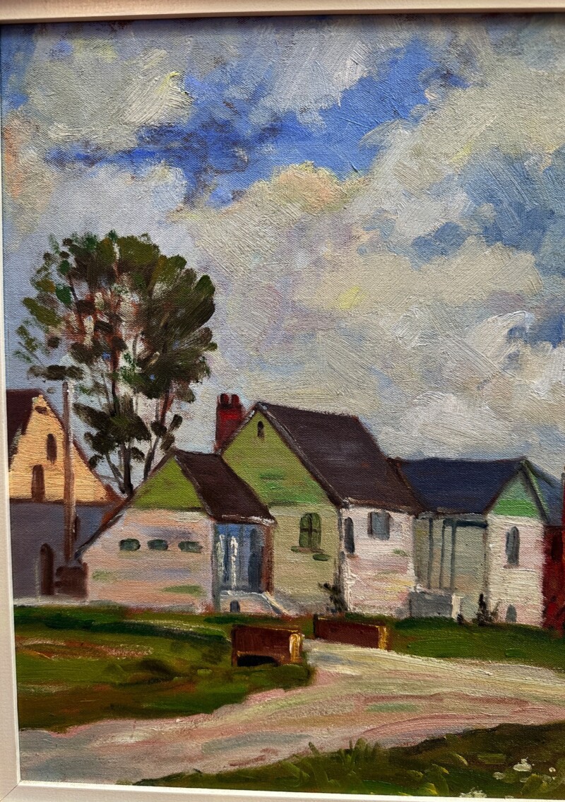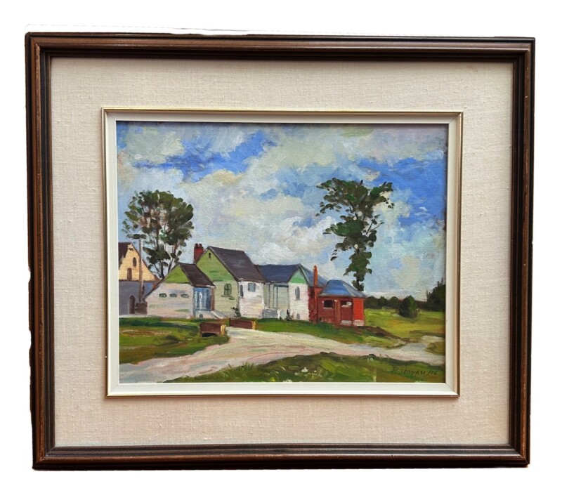 Canadian Oil on Masonite – Peter Stoyan (1900-1979) – “Cottages” dated 1956