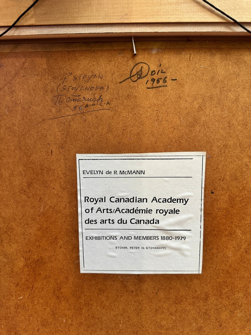 Peter Stoyan was an Associate of the Ontario College of Art (O.A.C.A.). The Ontario Society of Artists (O.S.A.)and the Royal Canadian Academy both began to include his works in their exhibitions from 1925.