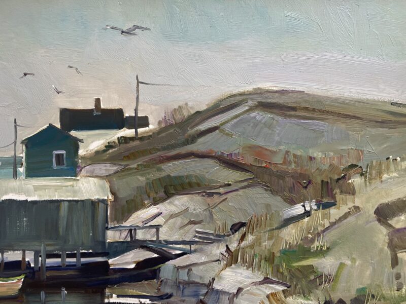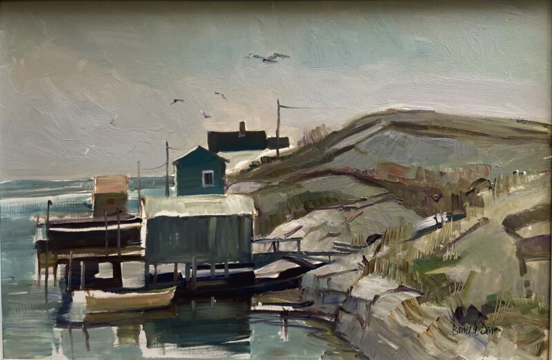 Canadian Oil Painting on Panel – Bruce Le Dain (1928-2000) – “Blue Rocks, Nova Scotia” – dated 1978