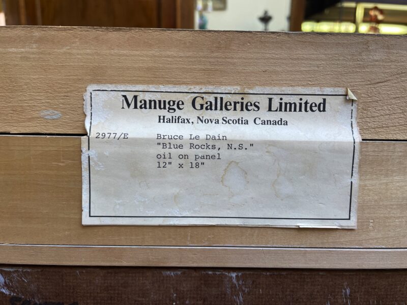 Original gallery label on reverse “Manuge Galleries, Halifax, Nova Scotia”