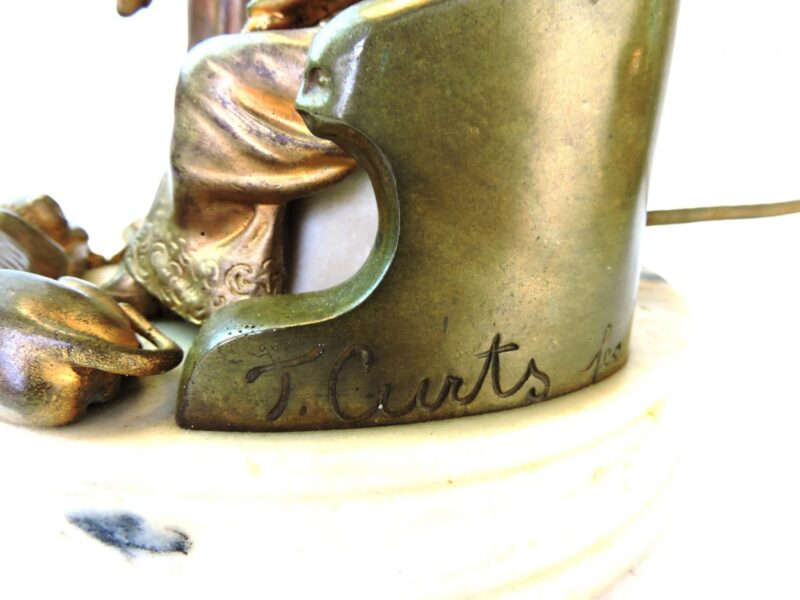 The Bronze lamp signed ‘T. Curts’ is an alias used by Vienna bronze artist Carl Kauba (1865-1922).
