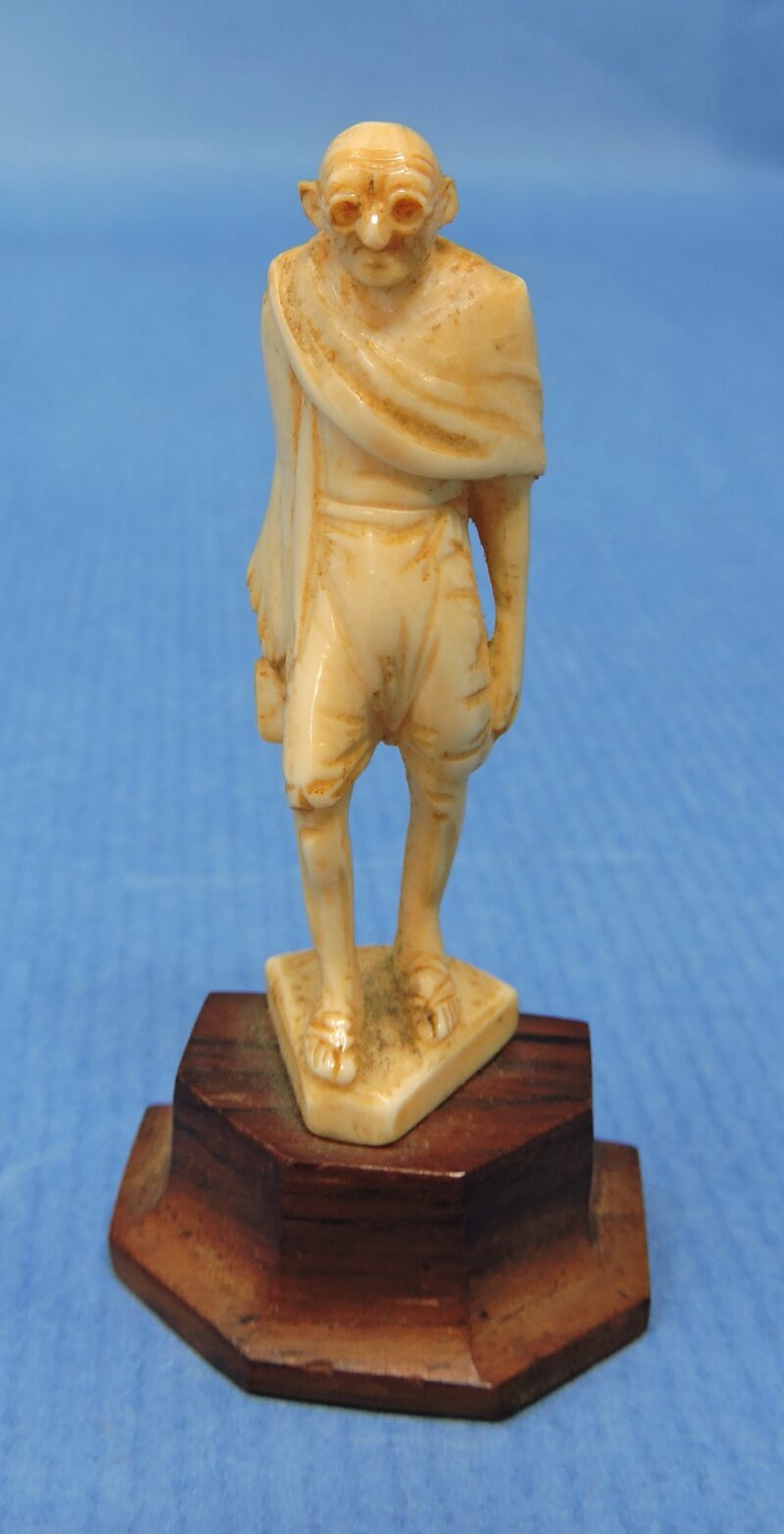 A wonderful carved ivory figurine of Mahatma Gandhi (1869 – 1948), the Indian civil rights and political ethicist, who employed non-violent resistance to lead the successful campaign for India’s independence from British rule.