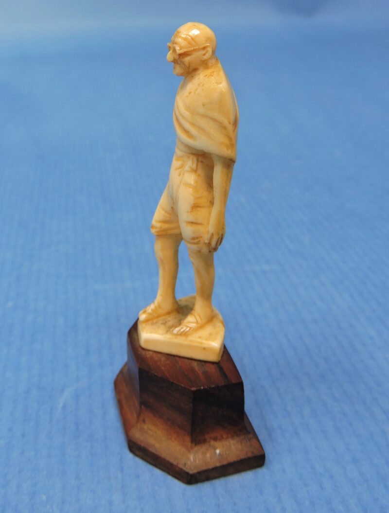 Carved Ivory Figurine of Mahatma Gandhi on Attached Wooden Stand