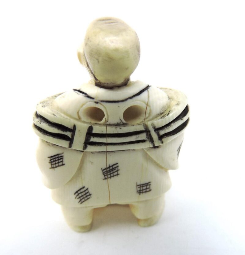 The netsuke is 2 inches tall x 1 1/4 inches wide and is in overall good condition, although there is a slight crack in the back.