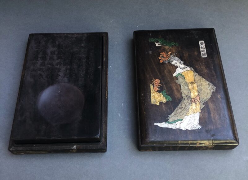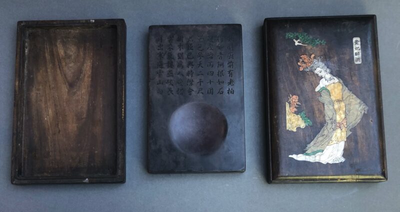 Chinese – Late Qing Dynasty Ink Stone in Inlaid Wood Box