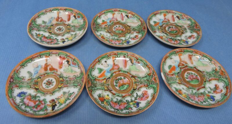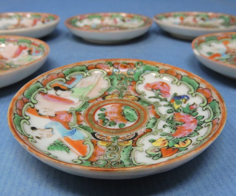 Chinese Painted Porcelain Set of 6 Small Butter Pats – “Famille Rose” Pattern