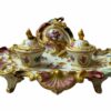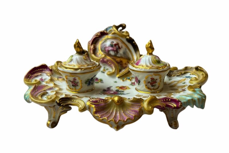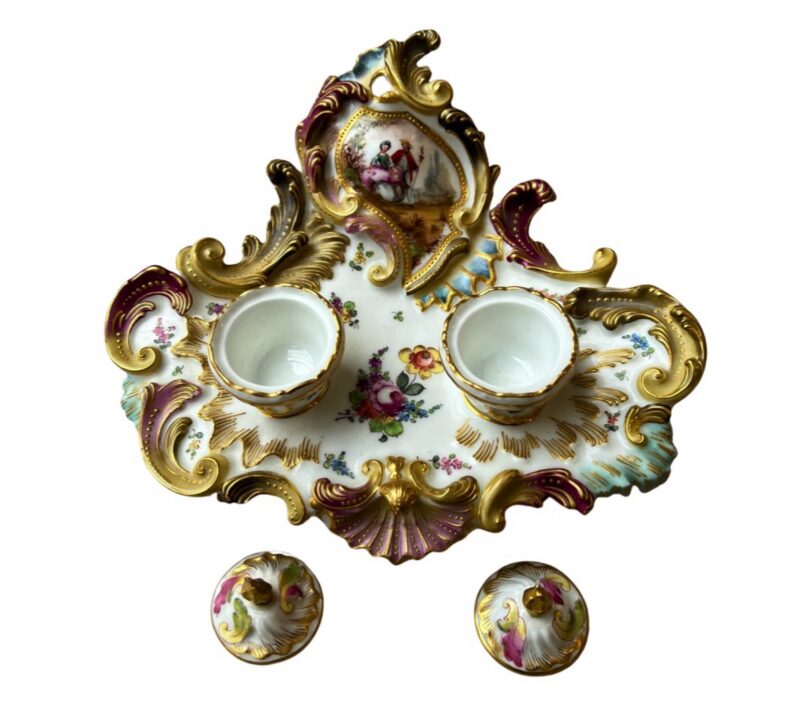 Circa 1850 German Porcelain Inkwells & Stand in Dresden / Meissen Style