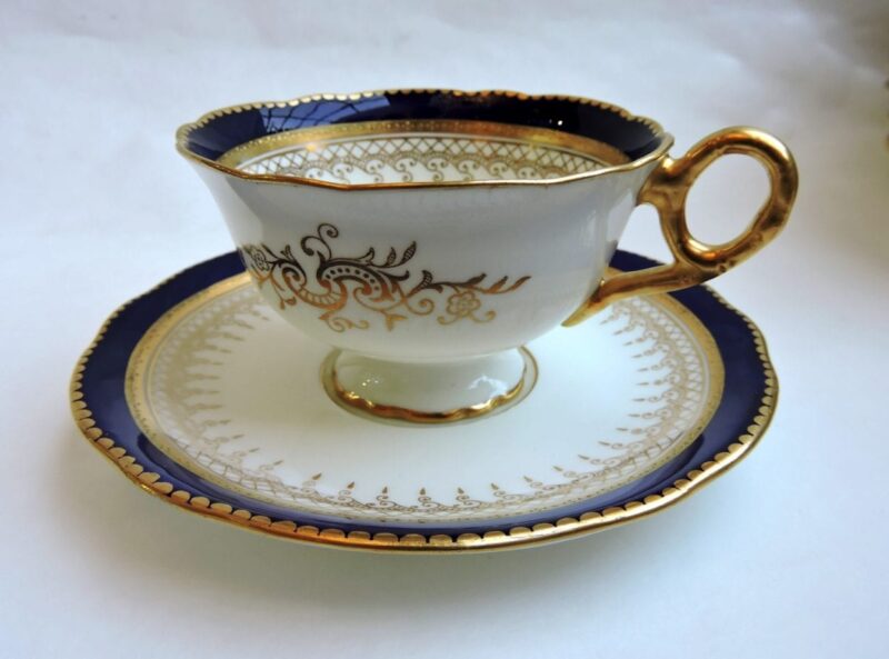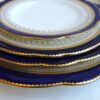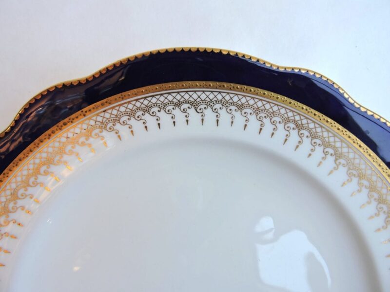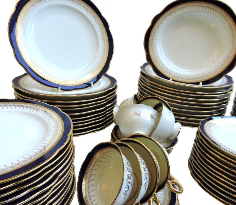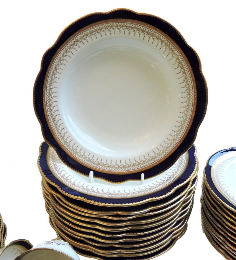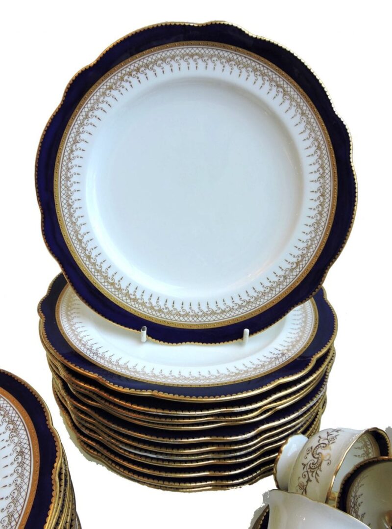 v** SOLD ARCHIVES **vA gorgeous large set of early Coalport English bone china for 12 in cobalt blue, gold and white pattern.