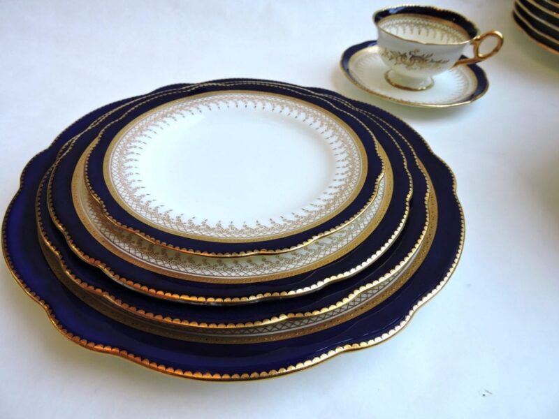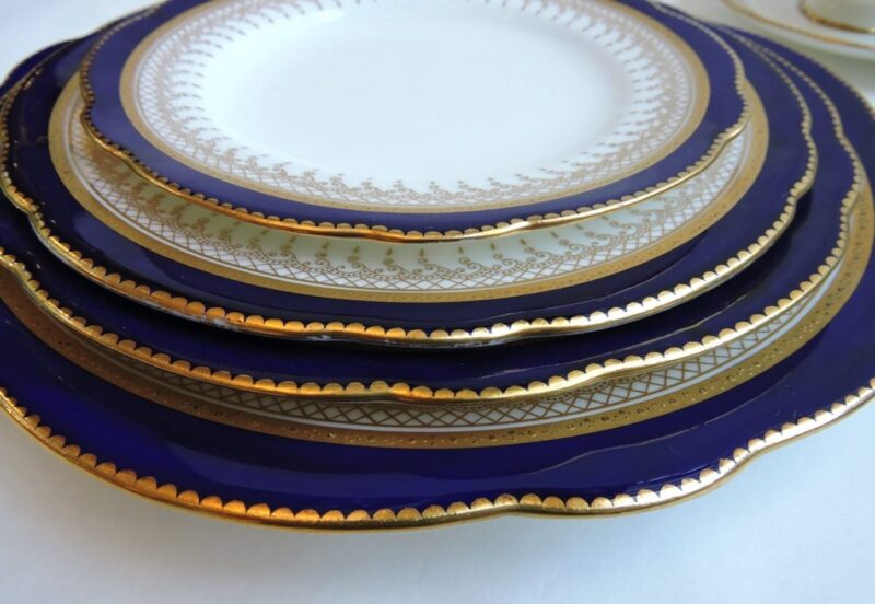 Coalport – Cobalt Blue, Gold & White English Bone China – Dinner Set for 12 – 84 Pieces. circa 1910