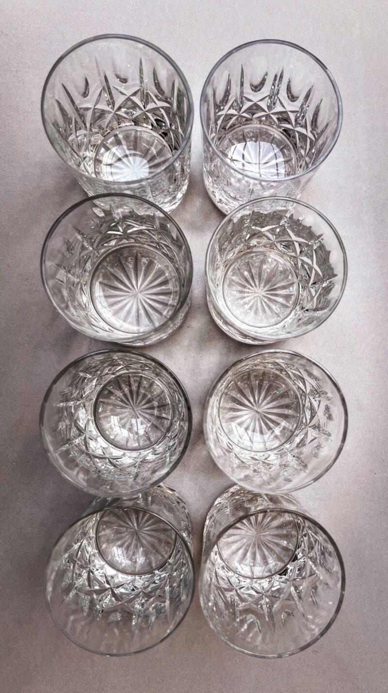 Crystal Whiskey Glasses Set of 8 + 1 Signed Waterford Decanter & 1 Pitcher