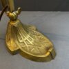 Curved Frame Bronze Desk Lamp with Art Nouveau Designs and Loetz Austria Art Glass Feathered Shade, circa 1900