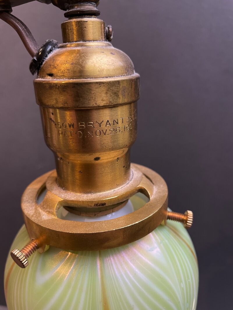 The socket is stamped: BRYANT. The shade is not marked but is referenced by several websites as Loetz.