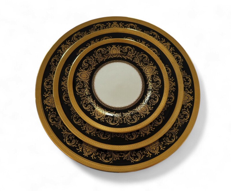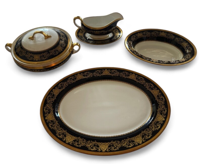 Custom Order – Aynsley Imperial Onyx (Black) Dinner set for 12 + Serving Pieces – 102 Pieces Total