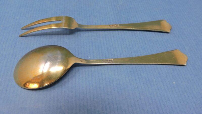 Note: there is some wear to the gold wash and some surface usage scratching, especially on the backs of the pieces. However, overall, these pieces are in very good condition.