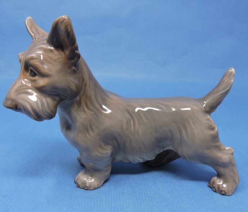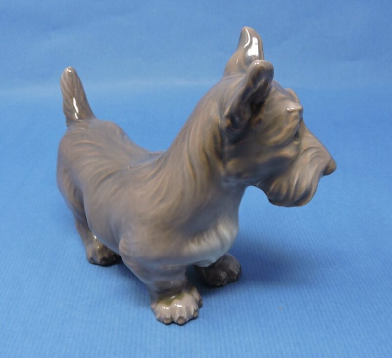 A wonderful porcelain figurine of a Scottie dog, made by DJ Copenhagen Denmark.