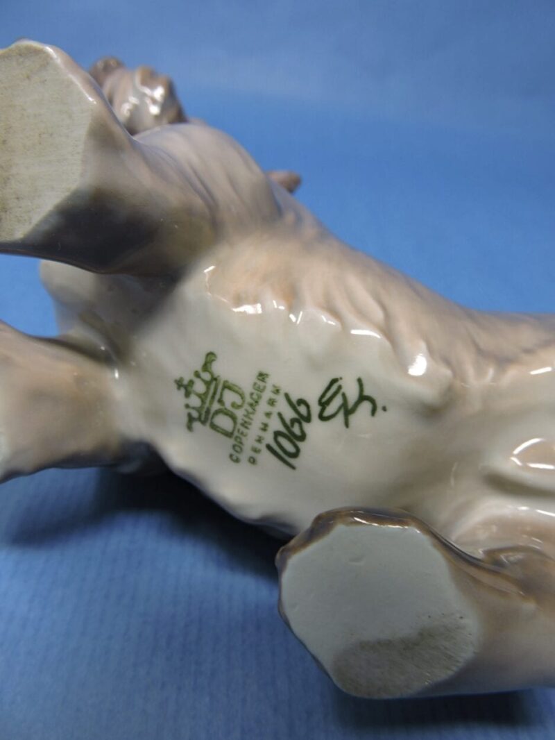 The figurine is stamped on the underside with the maker’s mark and reads “DJ Copenhagen Denmark 1066” and shows “EK” for the decorator’s initials.