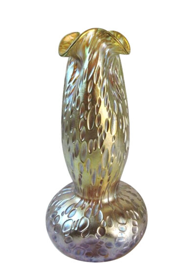 A beautiful Dutch silver & crystal decanter with facetted stopper, decorated with a .833 silver rim and scalloped edge holder. The holder is decorated with florals, putti, and insects and shows the maker’s marks, dated 1923, with the assay office letter “M” for Schoonhoven, Netherlands.