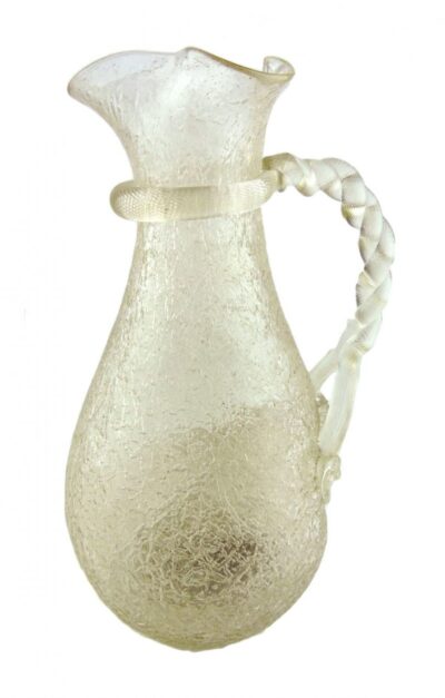 A beautiful Dutch silver & crystal decanter with facetted stopper, decorated with a .833 silver rim and scalloped edge holder. The holder is decorated with florals, putti, and insects and shows the maker’s marks, dated 1923, with the assay office letter “M” for Schoonhoven, Netherlands.