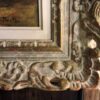 It is signed in the lower right of the canvas. The painting is housed in a beautiful carved wood frame.
