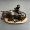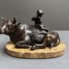 Early 20th Century “Boy and Ox” Bronze Figurine on Marble Base