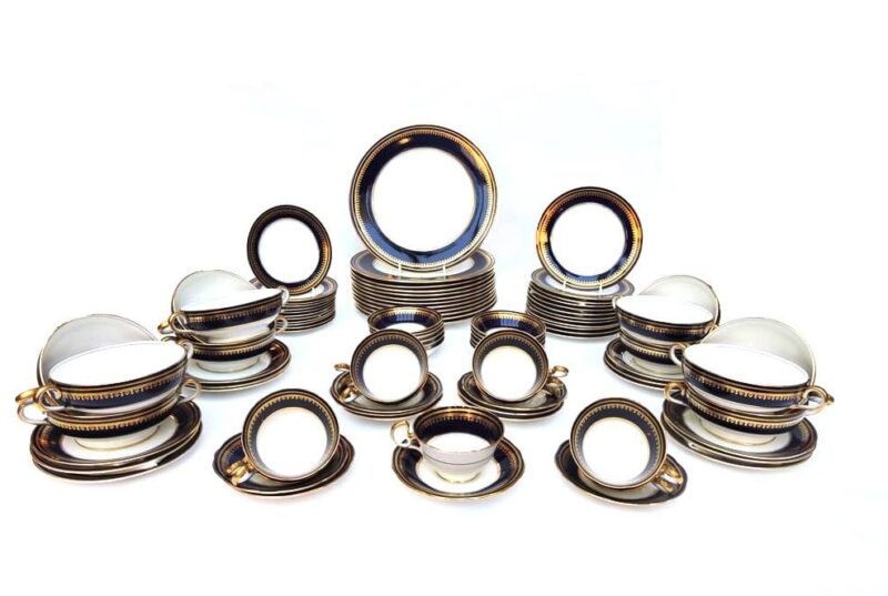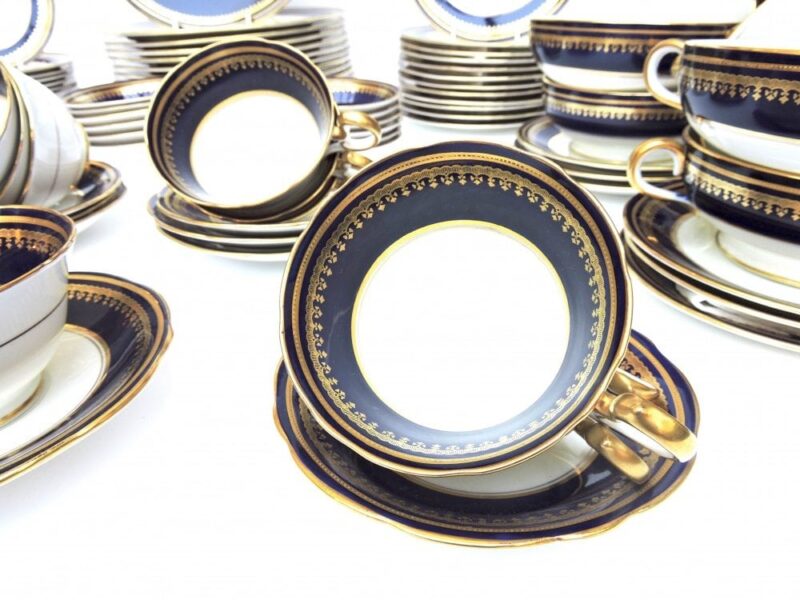 Early Aynsley China Set of Dishes for 12 – Cobalt Blue, Gold and White. England c.1910 Pattern #A4605