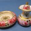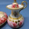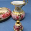 Note: there is a tiny chip on the side of the jug’s lid and some chips on the underside of the bottom rim of the bowl. There are a couple of very small pieces of the gilt trim missing on the jug’s upper rim and handle. However, overall, the set is in good condition with vibrant colouring.
