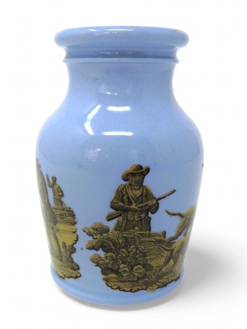 Early Pratt Ware Pottery Paste Jar, Depicting Shooting Scenes