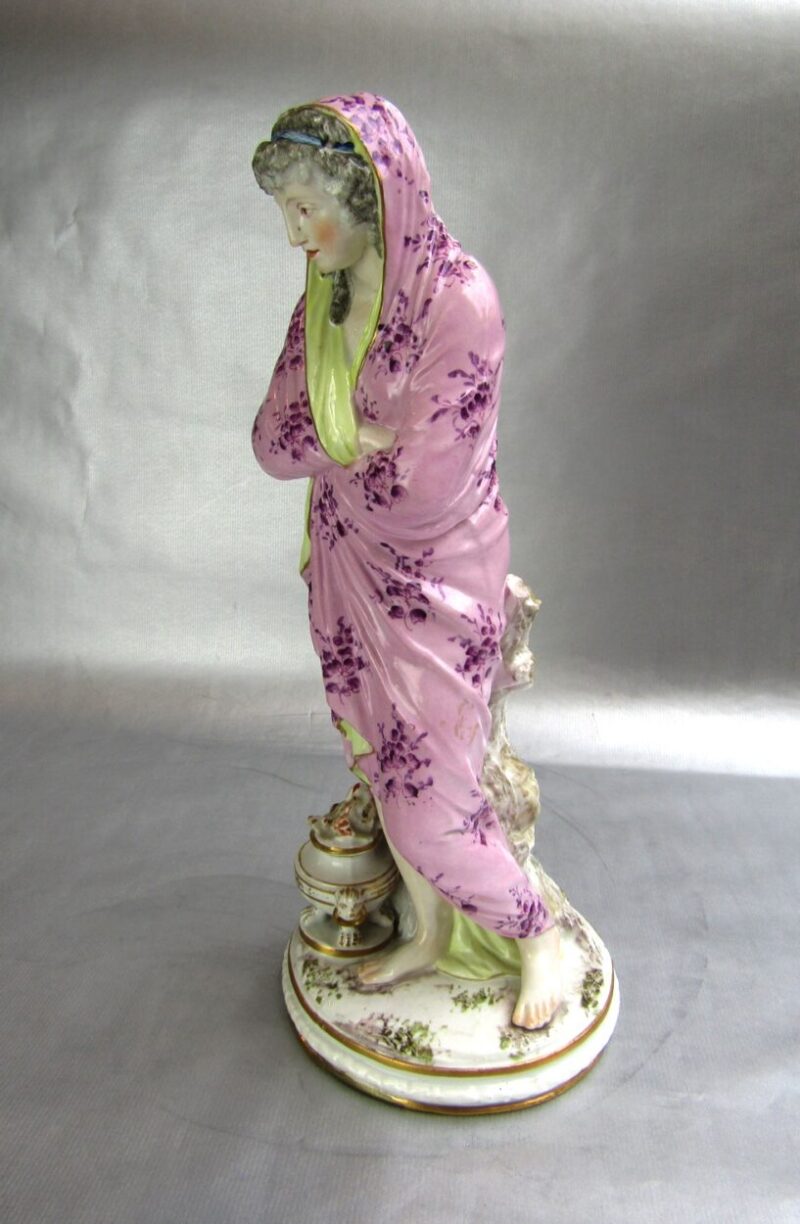 Figurines, PorcelainsA beautifully painted French Samson figure of a woman clutching her blanket wrapped around her body – her feet and and legs are bare – most likely representing “Winter”.