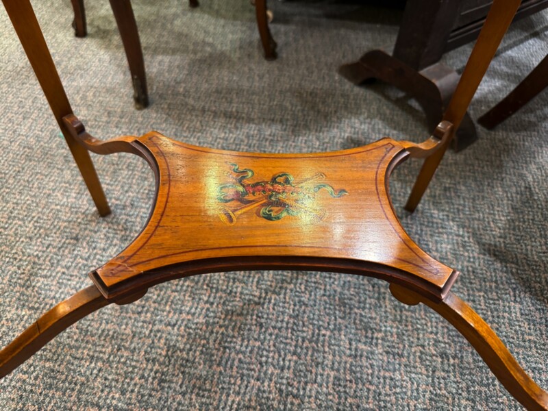 Edwardian Satin Wood Showcase Table with Hand Painted Roses – c.1890