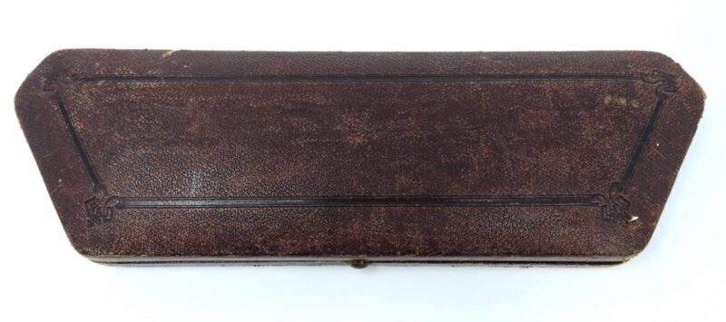 Please note the age discolouration on the white silk and some wear on the exterior of the case.
