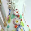There are no maker’s marks on the vase but it is English in origin – Coalbrookdale by it’s style. Coalbrookdale was made by the Coalport factory in the Victorian period. Pieces were not made as practical pieces but rather ornamental to decorate mantels and are decorated with multi-coloured three dimensional flowers.